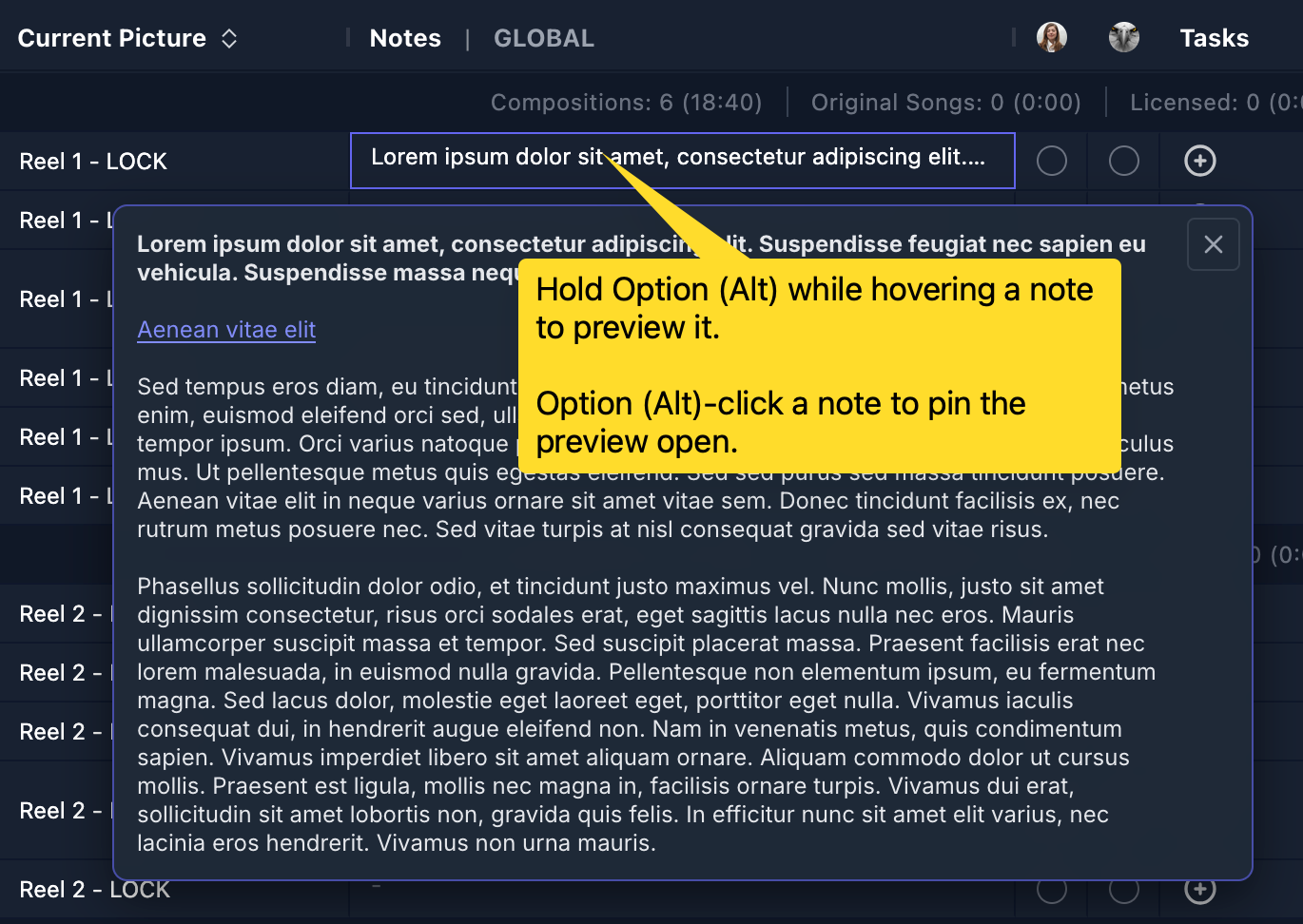 - Global Notes: Added global notes (not related to a specific cue) for all note fields.